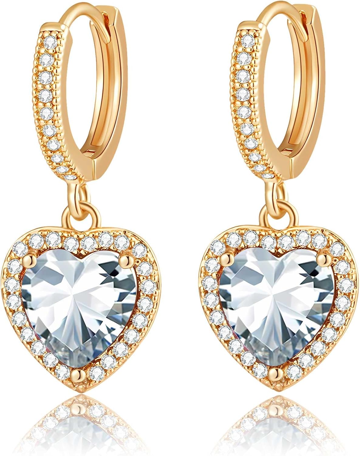 Austrian Crystal Heart Halo Drop Dangle Earrings for Women 14K Gold Plated Hypoallergenic Huggie Earring Jewelry Gifts