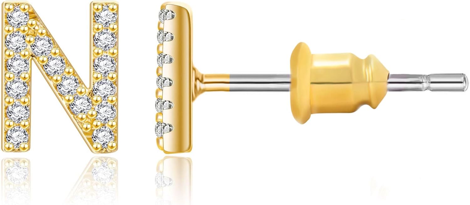 14K Gold Plated Initial Earrings Cubic Zirconia Tiny Letter Earrings Personalized Small CZ Stud Earrings for Women