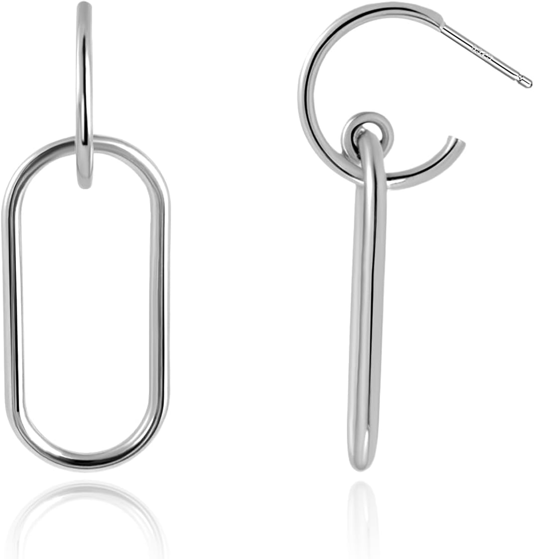 Small Silver Paperclip Dangle Earrings for Women Lightweight Chain Link Half Hoop Earrings Goth Cool Style Y2k Jewelry