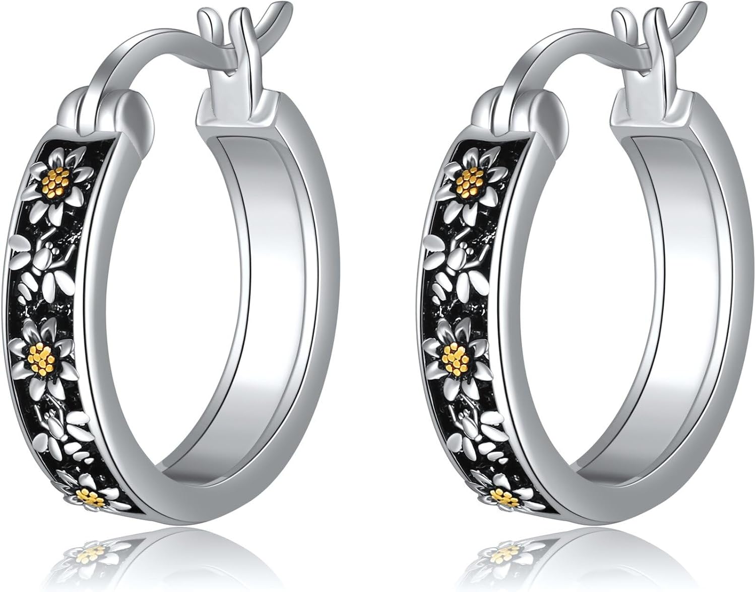 Sunflower/Daisy/Cherry blossom/Lily//Rose/Ladybug/Butterfly/Feather Hoop Earrings Sterling Silver Flower Hoop Earrings Small Huggie Earrings Jewelry for Women