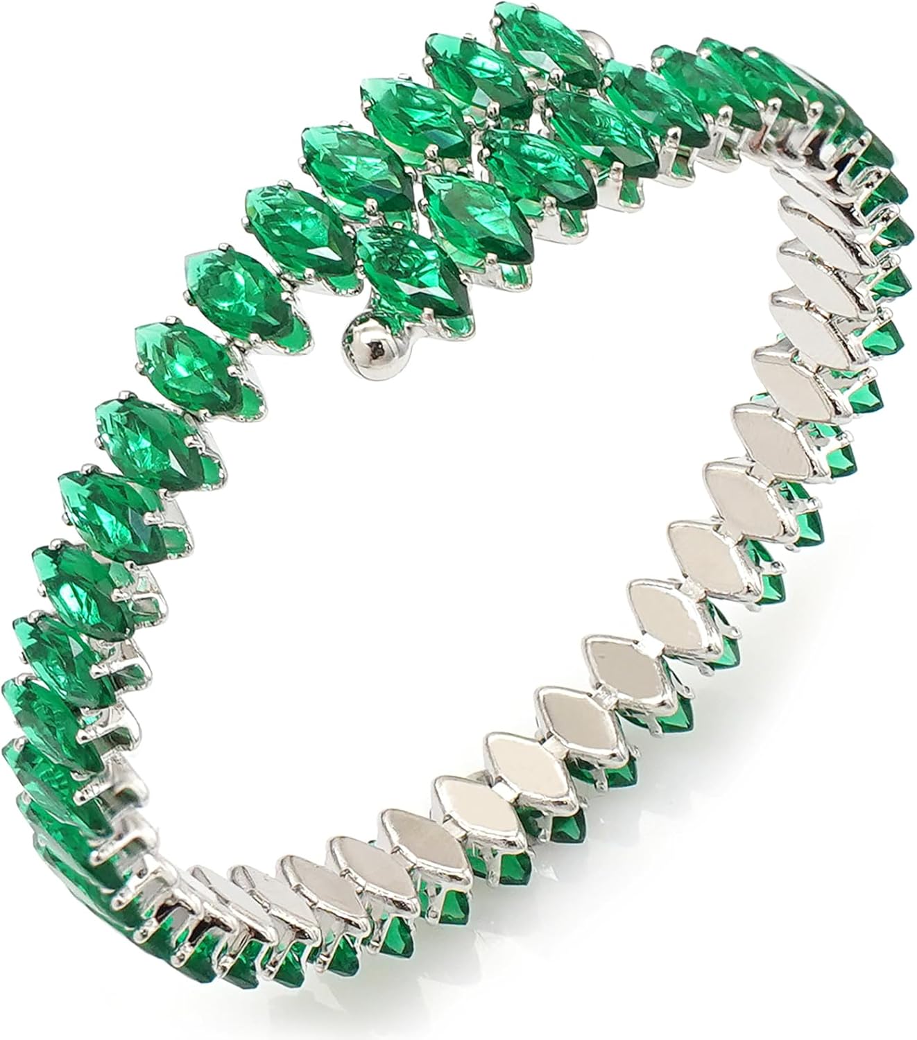 Rhinestone Cuff Bracelet Cubic Zirconia Tennis Bracelets Open Adjustable Elastic Bangle for Women