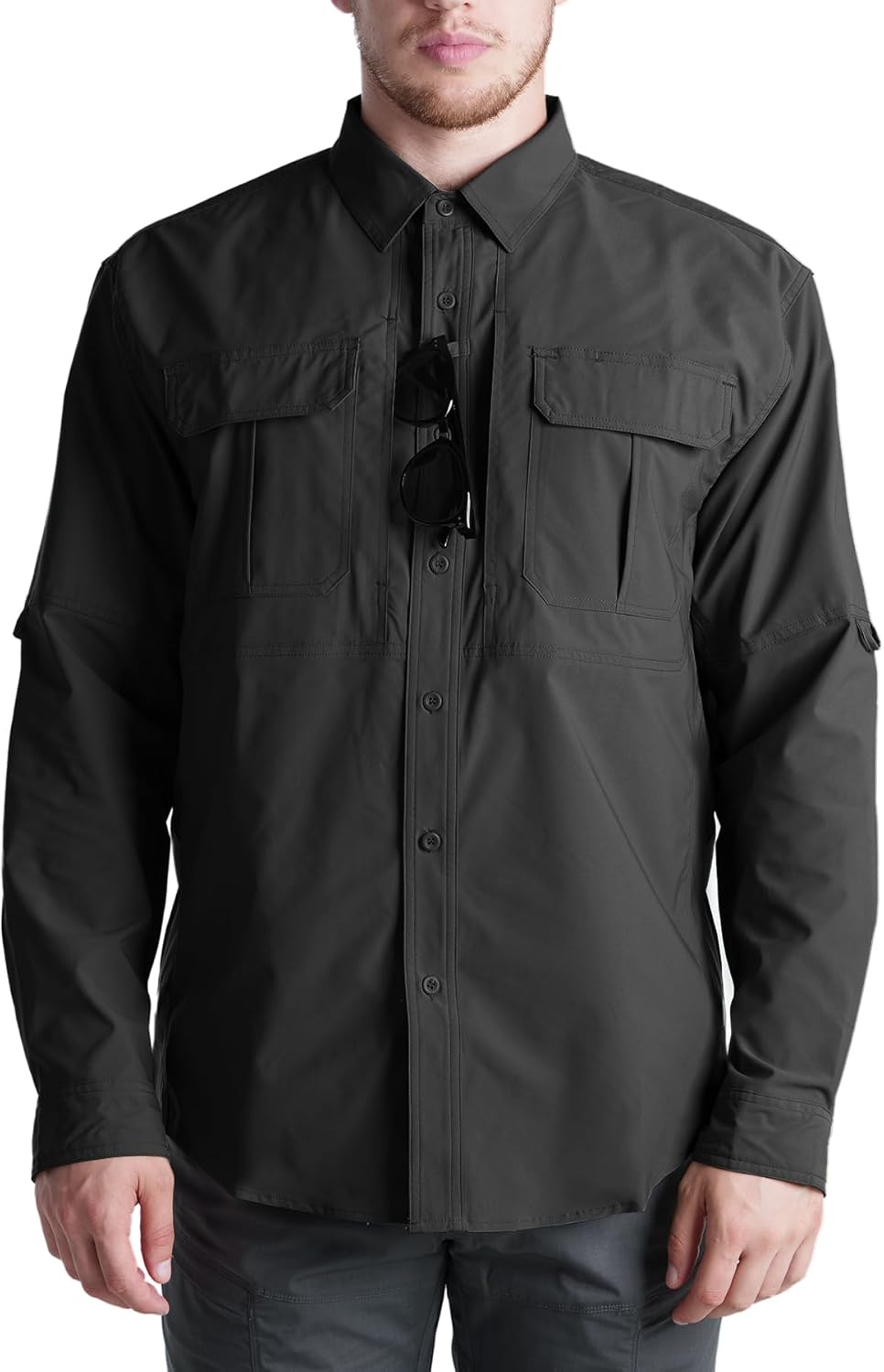 Men's Long Sleeve Fishing Shirts Quick Dry Breathable Water Resistant Zipper Pockets Tactical Shirt for Hiking