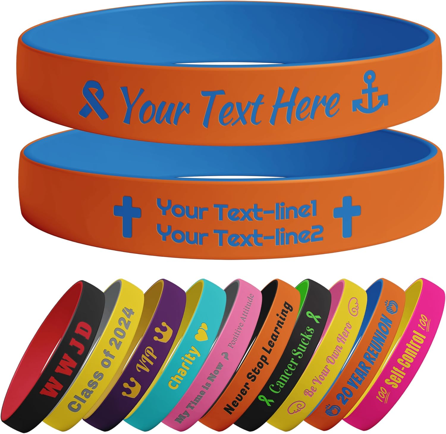 5-10000 Pcs Custom Silicone Wristbands Bulk with Your Text, Clipart, Logo, Personalized 1/2 Inch Rubber Bracelets for Motivation, Events, Gifts, Support, Fundraisers, Awareness