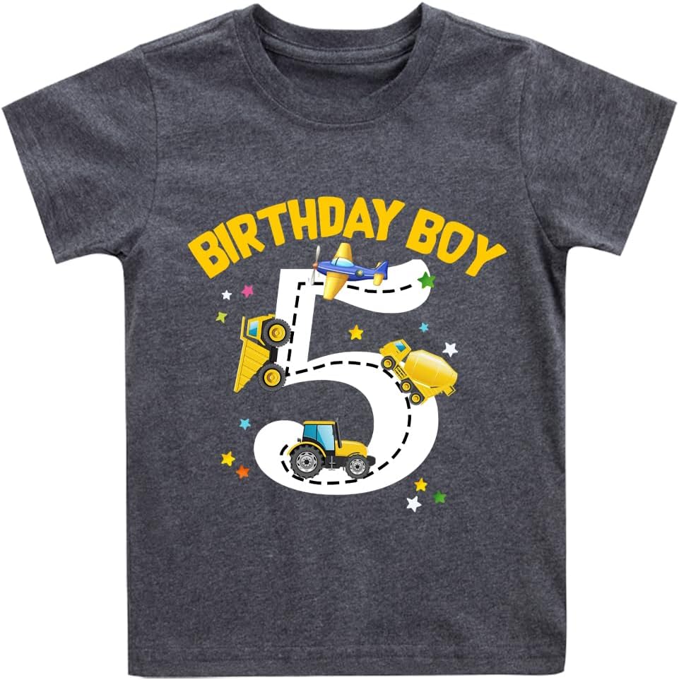 2-6 Years Boys Birthday Shirts Toddler Bday Construction Graphic Cotton Short Sleeve T-Shirt