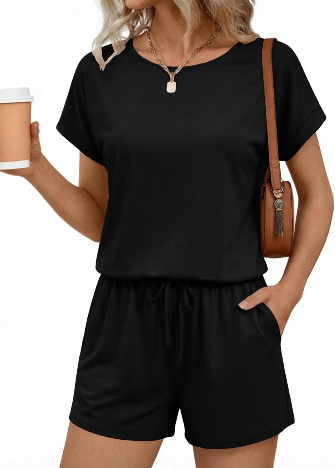 Ekouaer Womens Romper 2026 Summer Casual Short Jumpsuits Beach Vacation Clothes with Pockets