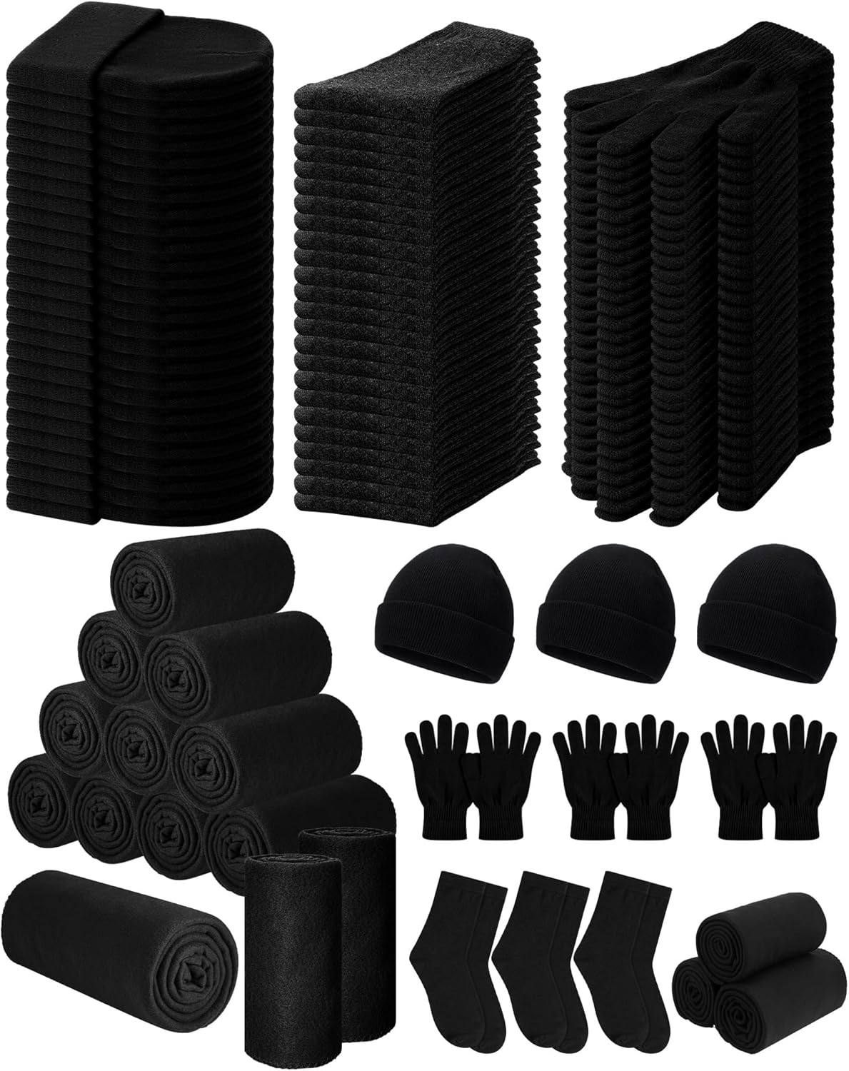 Toulite 120 Pcs Homeless Care Package Supplies Winter Knit Beanies Gloves Socks Fleece Blankets Bulk for Winter Homeless Care