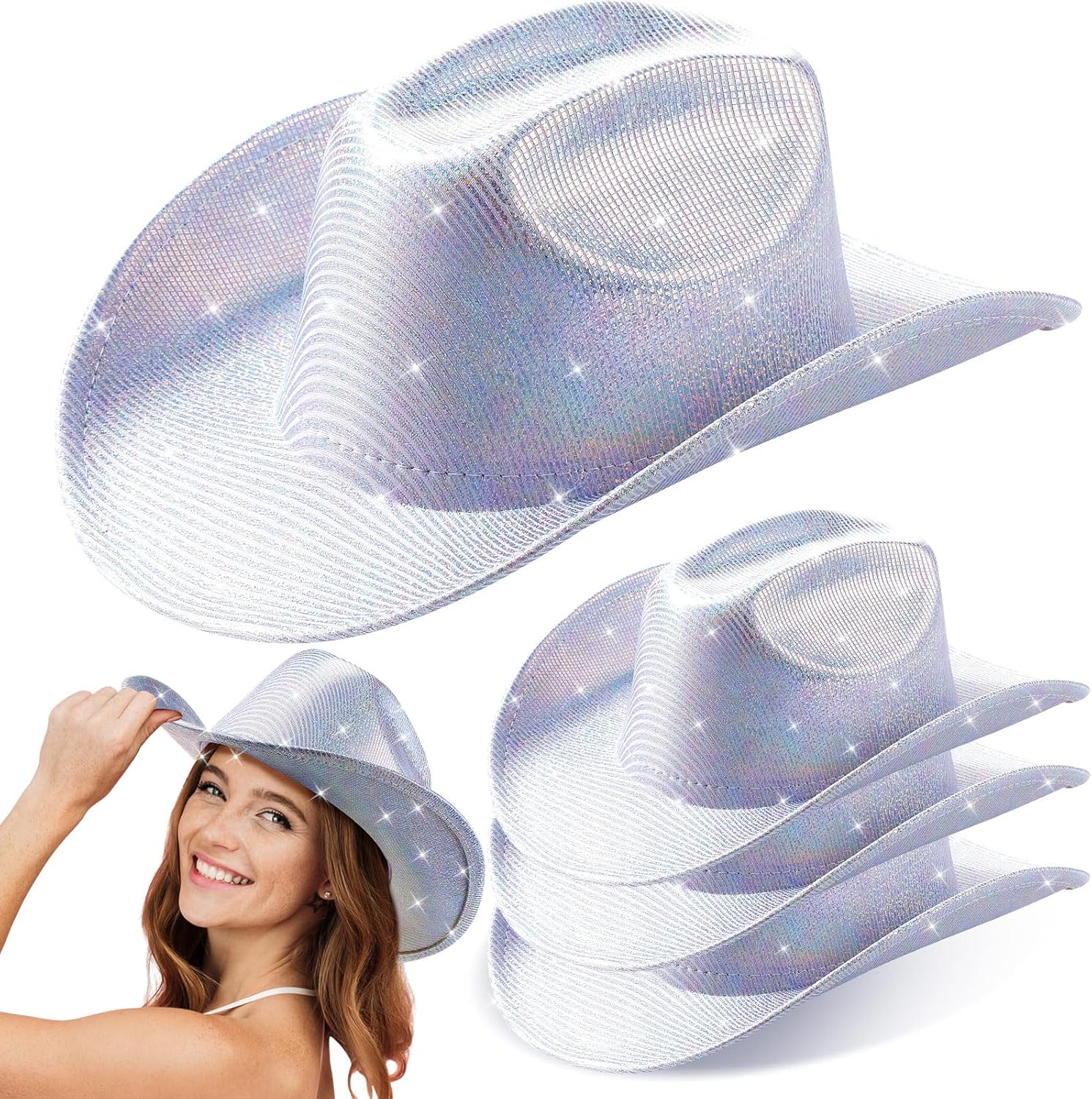 4 Pcs Sparkle Sequin Space Holographic Cowboy Hat for Womens Glitter Western Cowgirl Hat for Disco Party