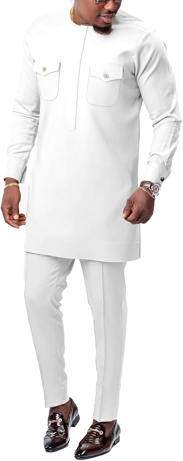Men African Outfits 2 Piece Set Shirt Pants Nigerian Dashiki Suit Attire Clothing