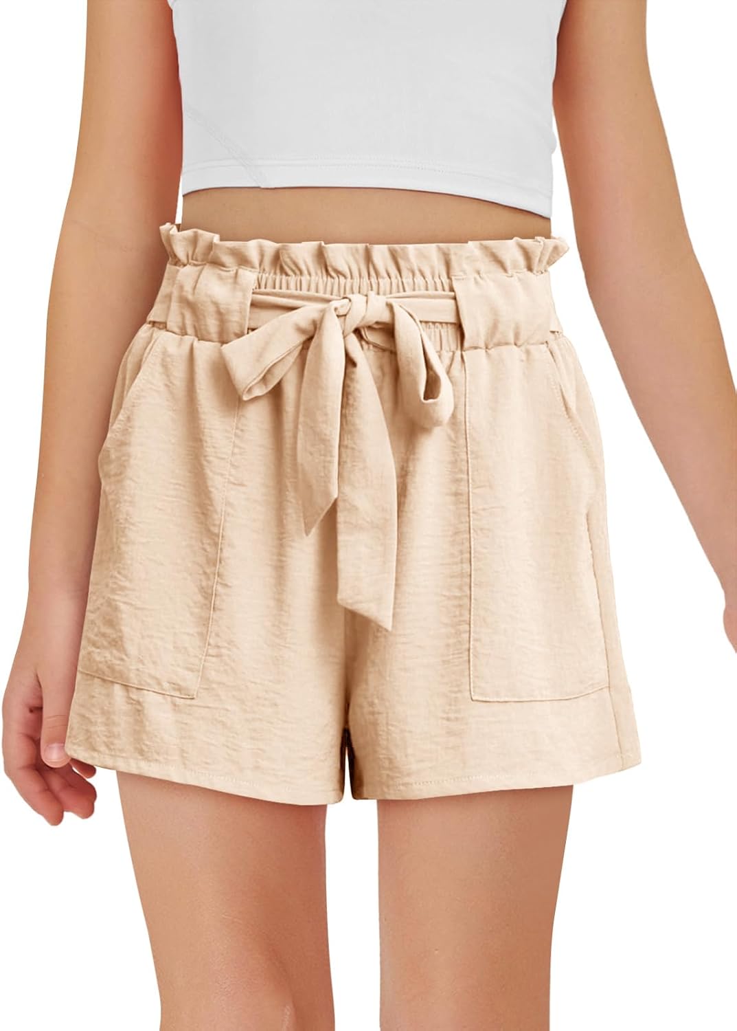 Haloumoning Girls High Waisted Shorts Kids Ruffle Summer Dress Shorts with Pockets 5-14 Years