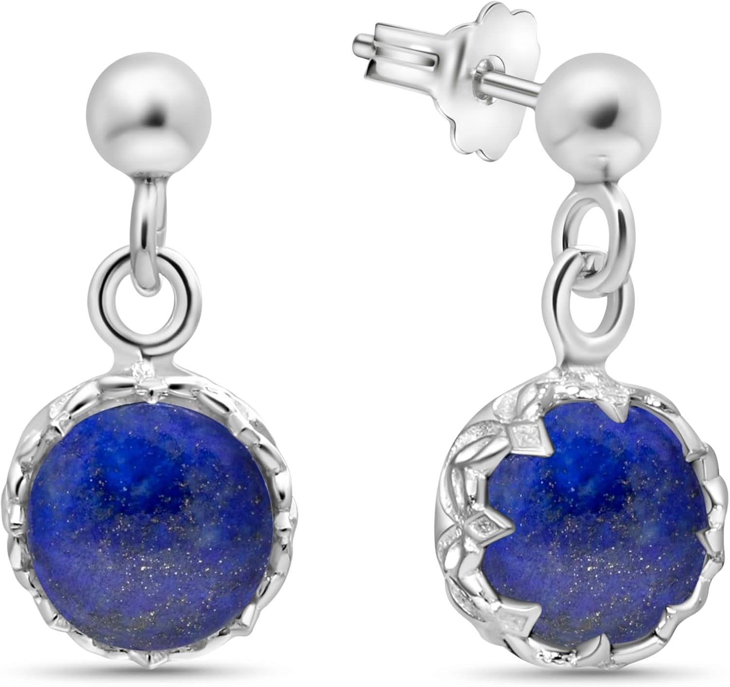 925 Sterling Silver Gemstone Earrings for Women - Birthstone Earring - Earrings Silver Dangle Post Earrings - Silver Drop Earrings for Women - Everyday Earrings - Minimalist Jewelry for Women