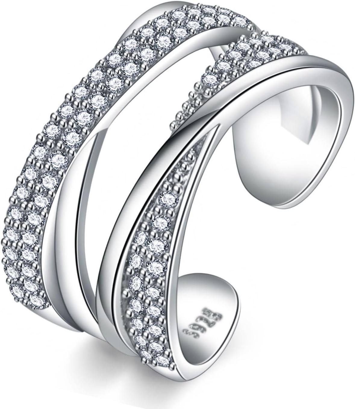 Sterling Silver gold-plated Rings for Women Thumb Rings Open Adjustable Knuckle Rings for Women Minimalist Cross Line Band Rings with Cubic Zirconia