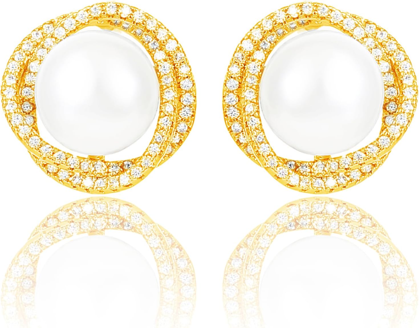 14K Gold Plated Shell Pearl Rhinestone Stud Earrings for Women Jewelry