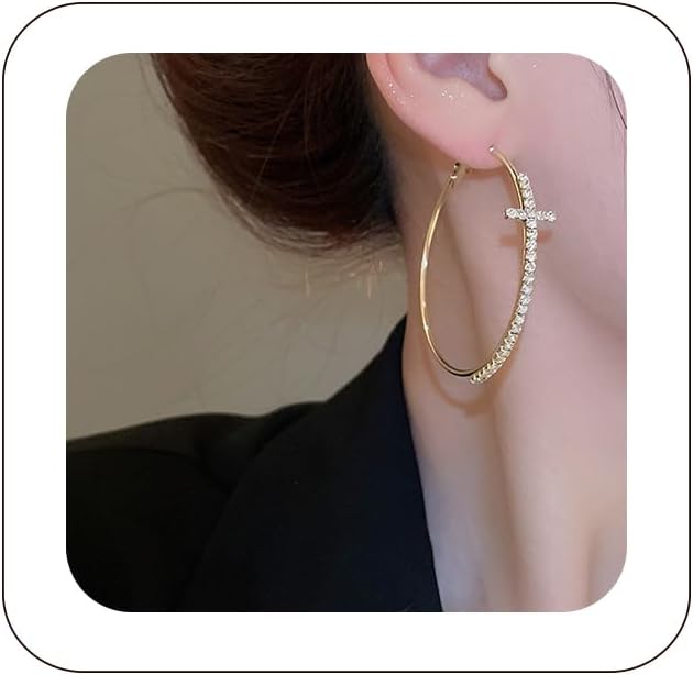 Large Cross Hoops Earrings for Women Trendy Rhinestone Sparkly Earrings Exaggerated Prom Party Earrings Formal Jewelry