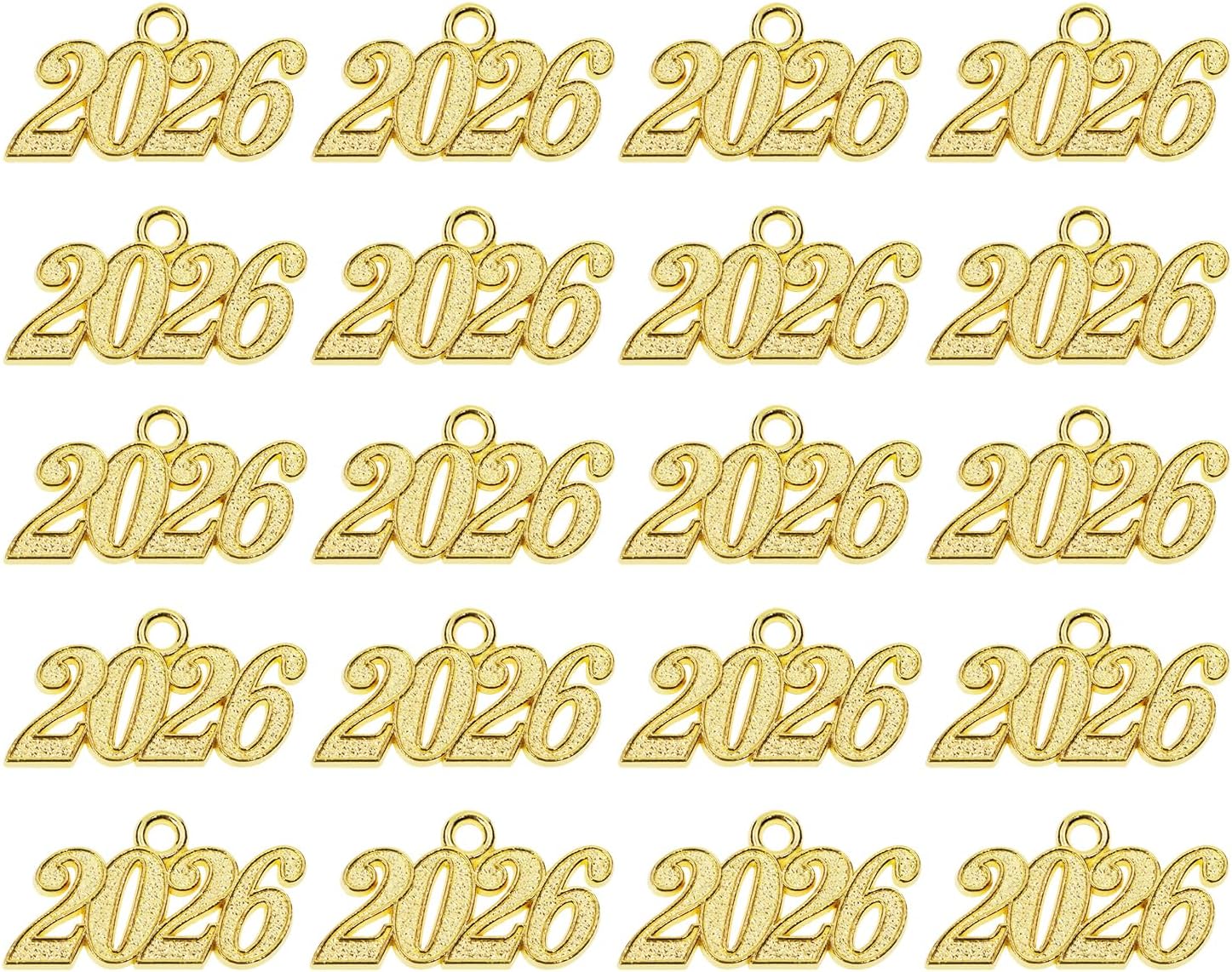 Shapenty Metal Year Signet 2026 DIY Pendant Charms for Graduation Tassels Bracelet Necklace Earrings Keychain Zipper Pulls Cellphone Craft Jewelry Making Christmas Party Decoration, 20PCS