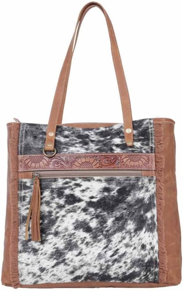 Myra Bag Cow Print Purses for Women - Canvas and Hairon Bag with Leather Shoulder Strap, Western Style Women's Purses