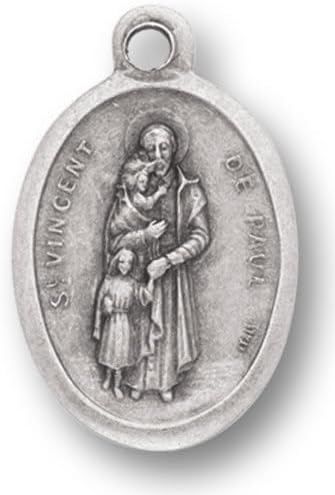Hirten Small Oval Saint Vincent De Paul - Pray for Us Silver Oxidized Medal Charm, Pack of 5 Medals