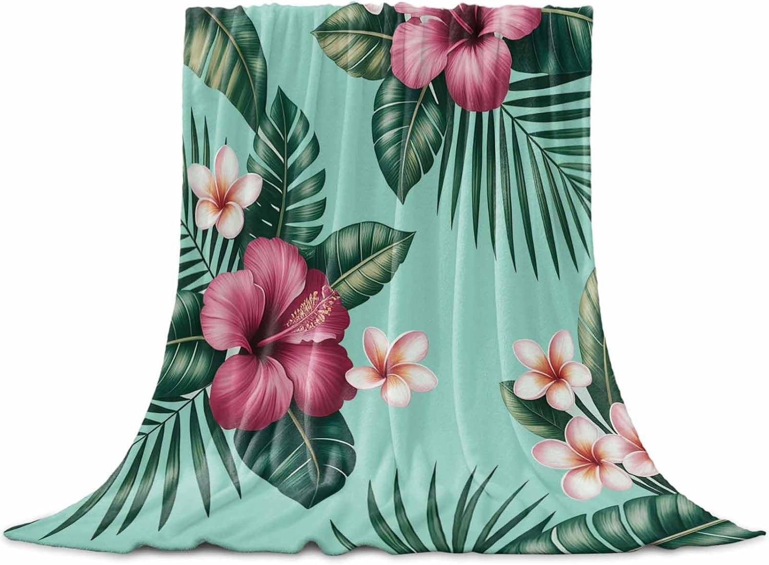 Ultra Soft Flannel Fleece Bed Blanket Tropical Flowers Hibiscus Throw Blanket All Season Warm Fuzzy Light Weight Cozy Plush Blankets for Living Room/Bedroom 40" x 50"