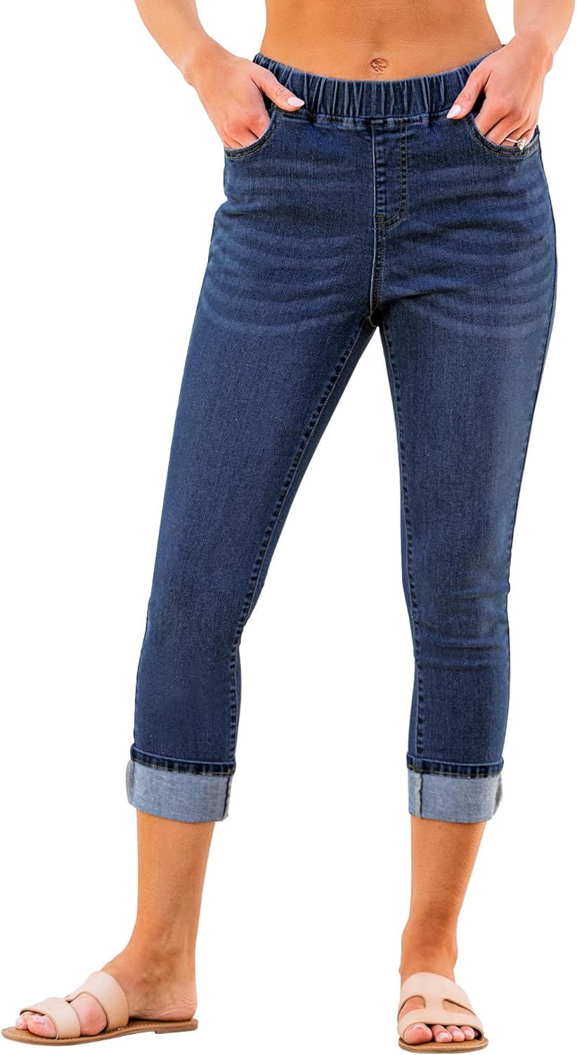 GRAPENT Pull On Jeans for Women High Waisted Skinny Capri Pants Trendy Stretch Denim Cropped Jeans Crop Jeggings Capris