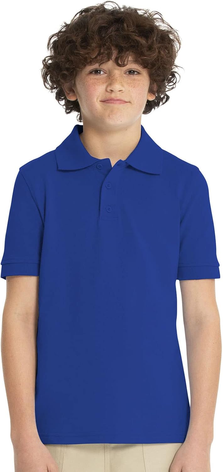 Real School Uniforms Boys Short Sleeve Pique Polo with Three Button Placket Ribbed Collar T-Shirt