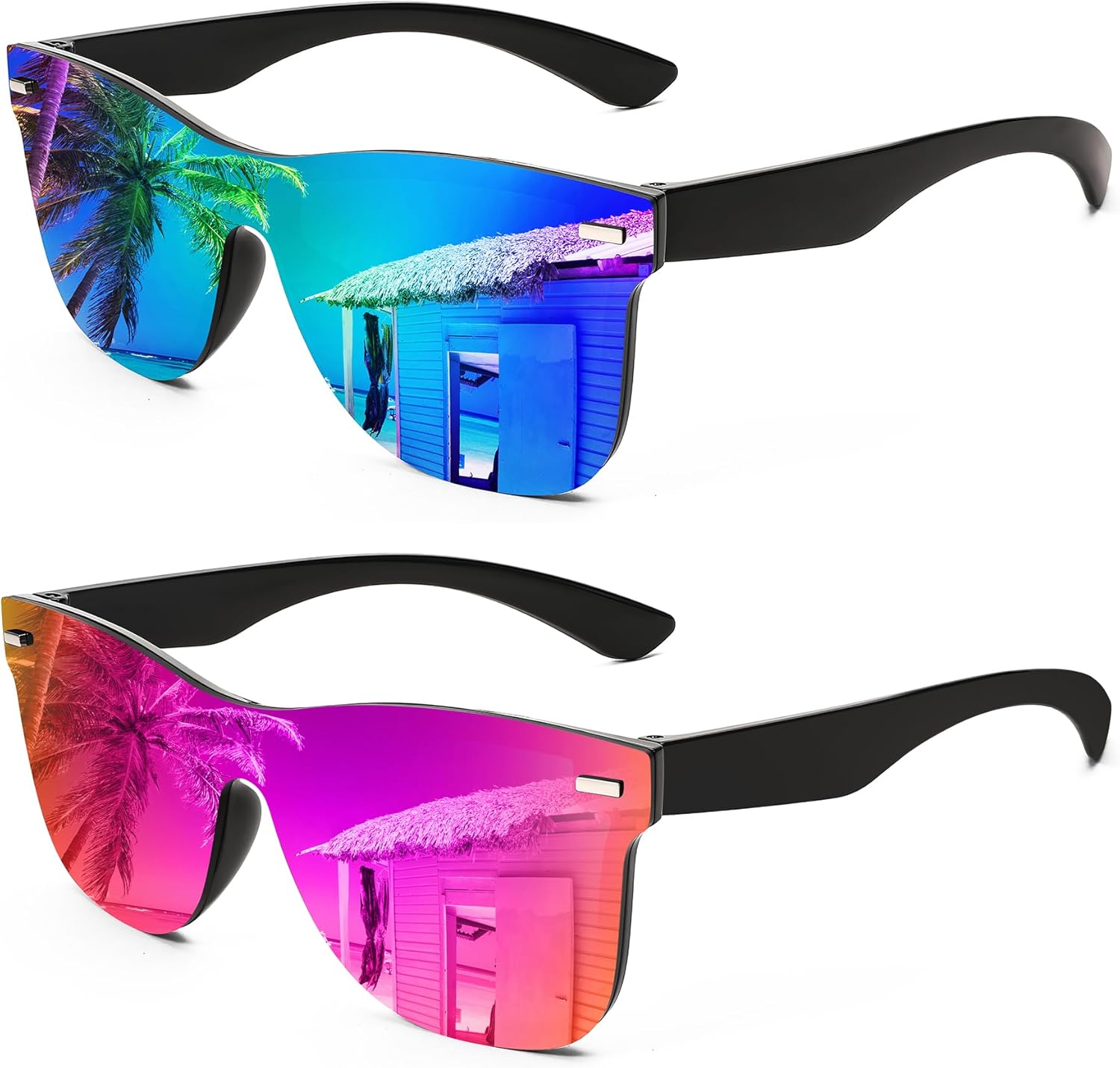 FEISEDY Trendy Rimless Mirrored One Piece Lens Sunglasses Reflective Sun Glasses B4114
