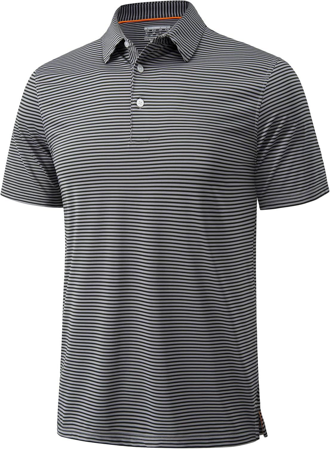 MAGCOMSEN Men's Polo Shirts Short Sleeve Striped Golf Summer Polos Dry Fit Performance Casual Collared Shirt Medium Grey S