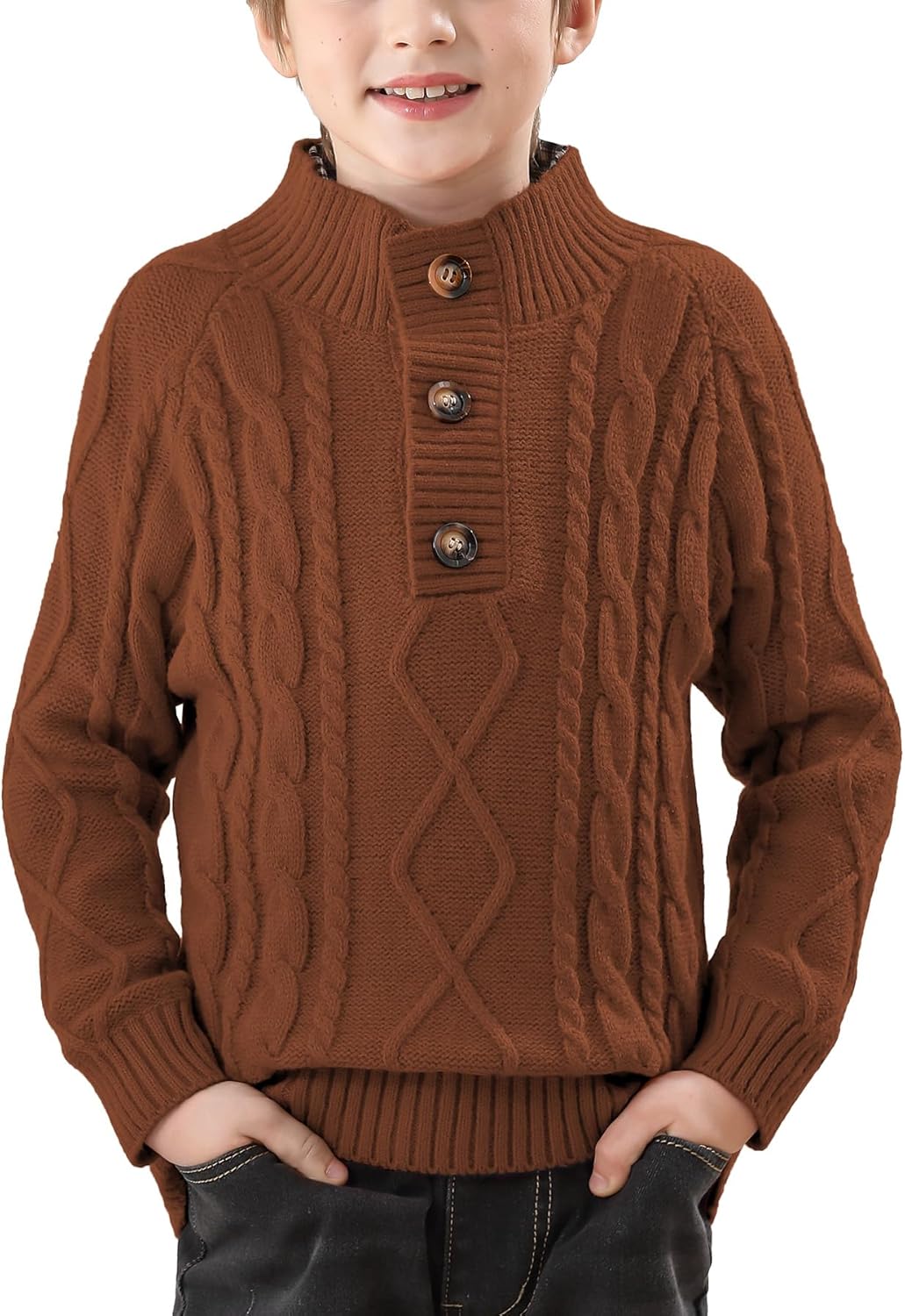 BesserBay Boys Winter Warm Cable Knit Button Down Sweaters Raglan Sleeve Mock Neck Cute Pullover 3-12 Years