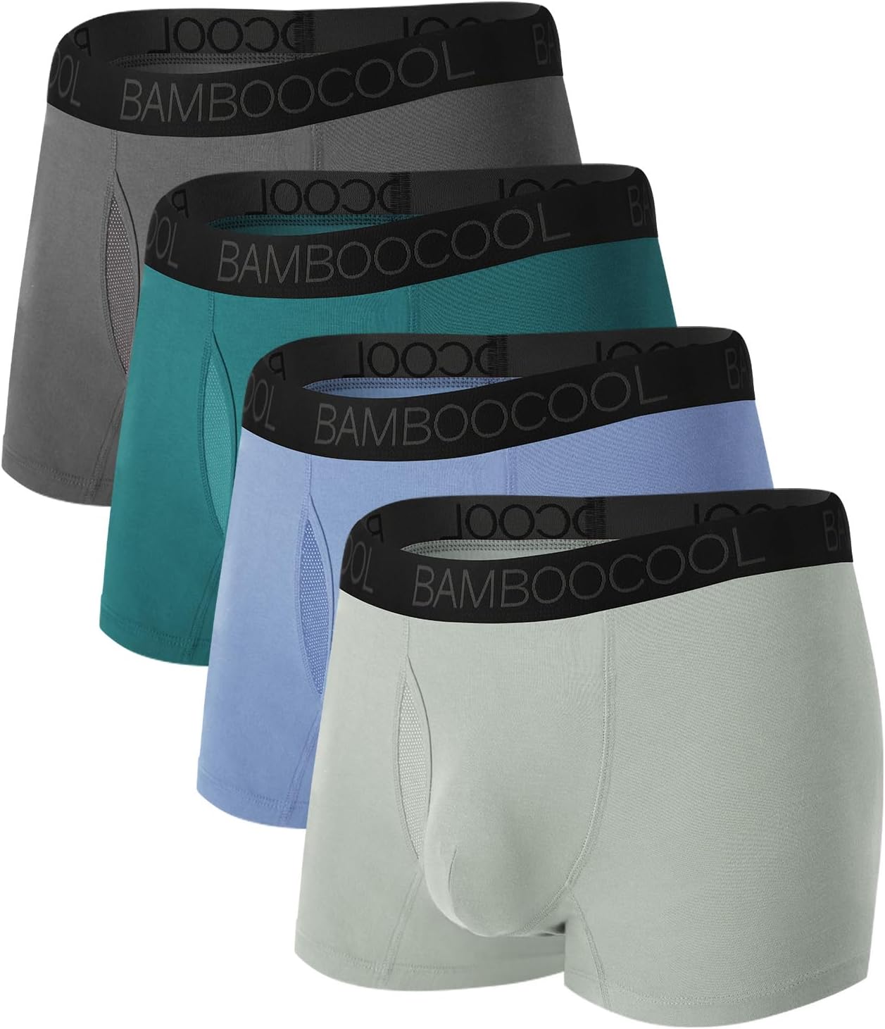 BAMBOO COOL Mens Trunks Underwear Performance Breathable Mesh Fly Zone Moisture-Wicking(4 Pack)