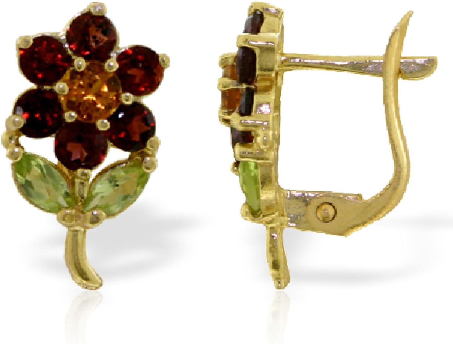 2.12 Carat 14k Solid Gold Flower Stud Earrings Garnet, Citrine Peridot