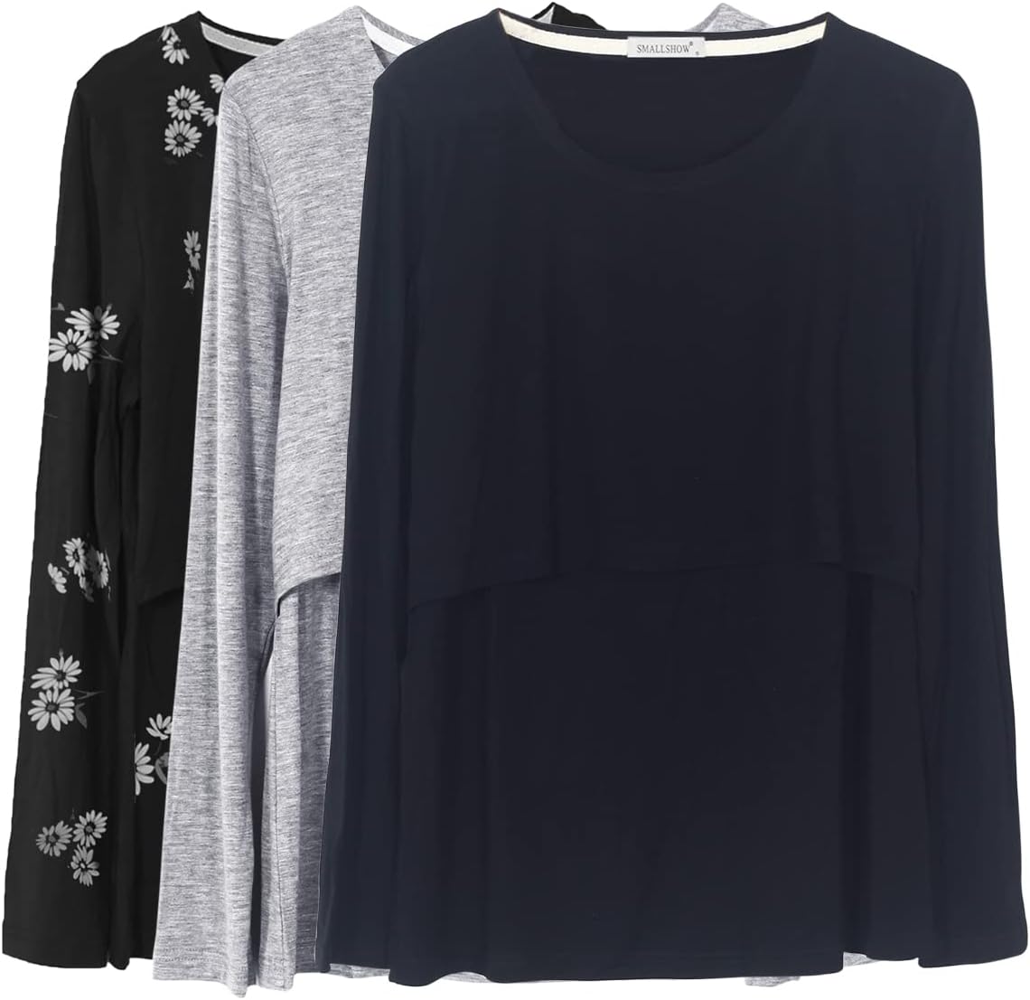 Smallshow Women's Nursing Tops Long Sleeve Shirts for Breastfeeding 3-Pack