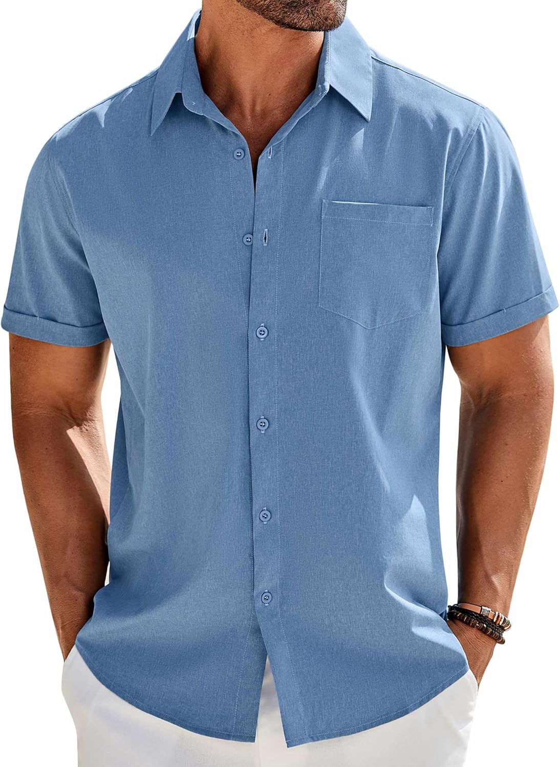 COOFANDY Men's Button Down Short Sleeve Shirts Casual Beach Summer Outfit Blue