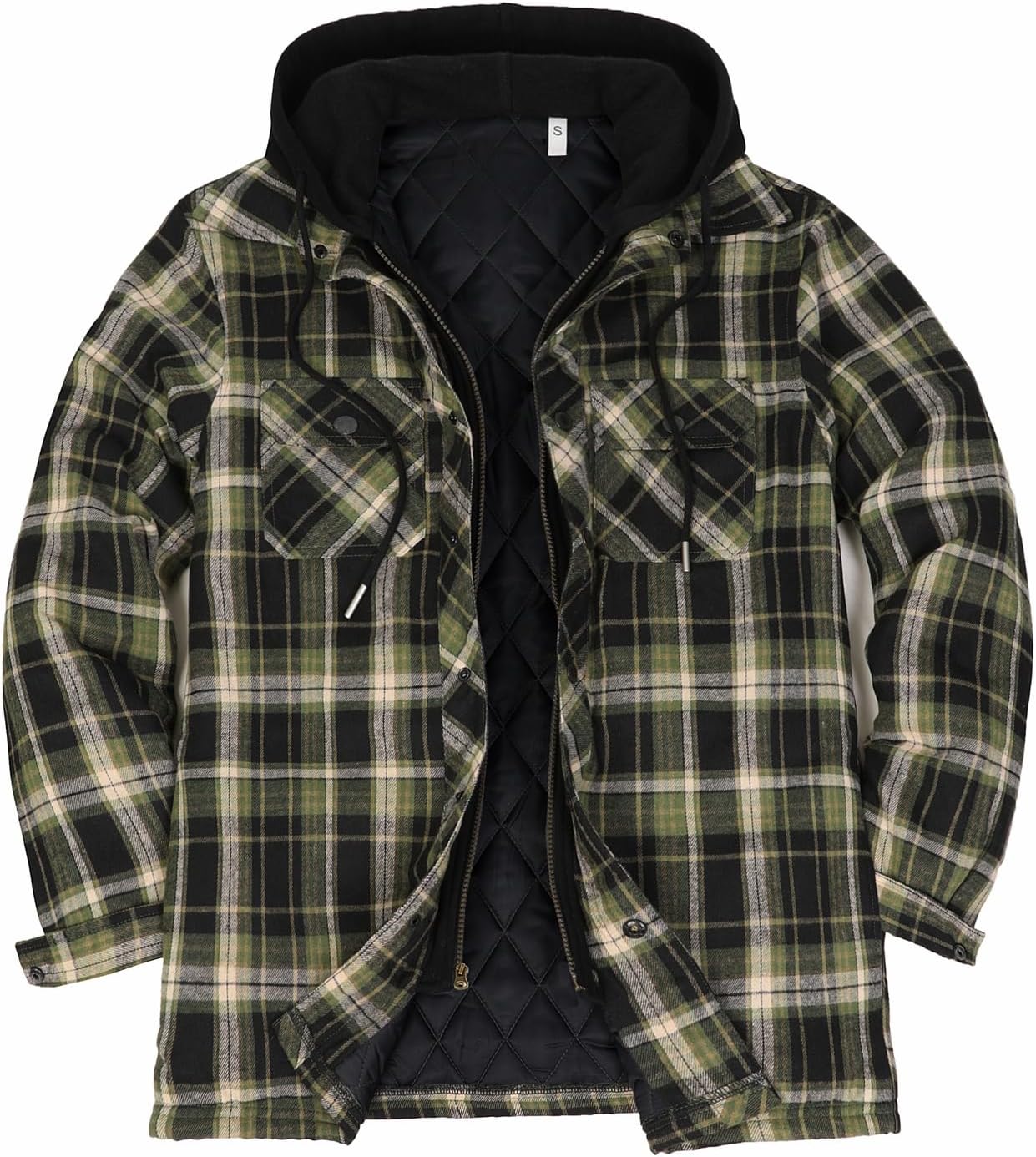ThCreasa Mens Plaid Quilted Lined Flannel Jacket Button Down Flannel Shirt Jackets with Hood