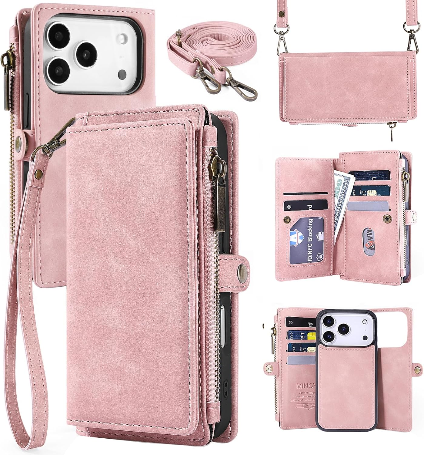 ![MInCYB for iPhone 17 Pro Max Wallet Case, [Compatible with Magsafe] [Magnetic Detachable] [RFID Blocking] PU Leather Case with Card Holder & Crossbody Strap for Women Men, Pink - Image 4](https://m.media-amazon.com/images/I/81e03eIkuqL._AC_SL1500_.jpg)