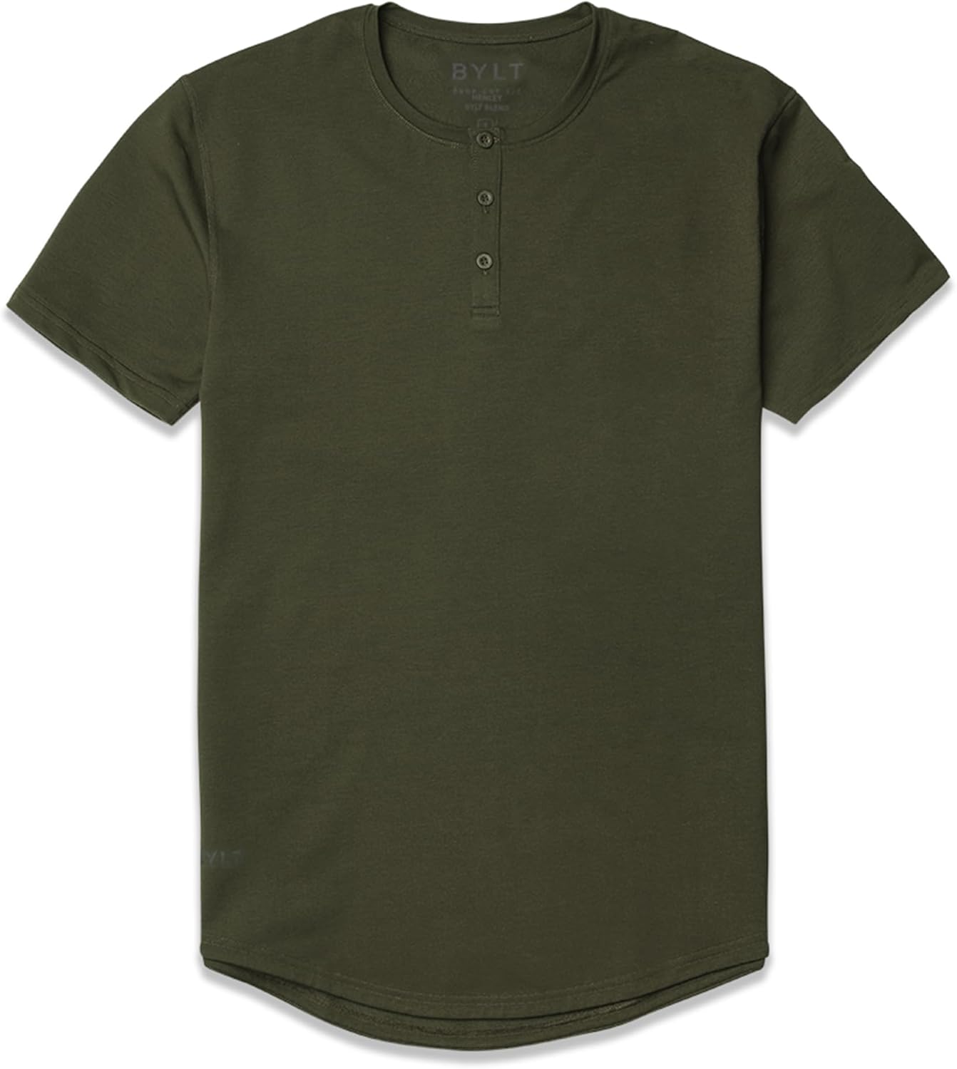 BYLT Drop-Cut Henley Shirts for Men, 3-Button Closure, Short Sleeve, Casual T-Shirt, Soft & Breathable, Wrinkle Resistant