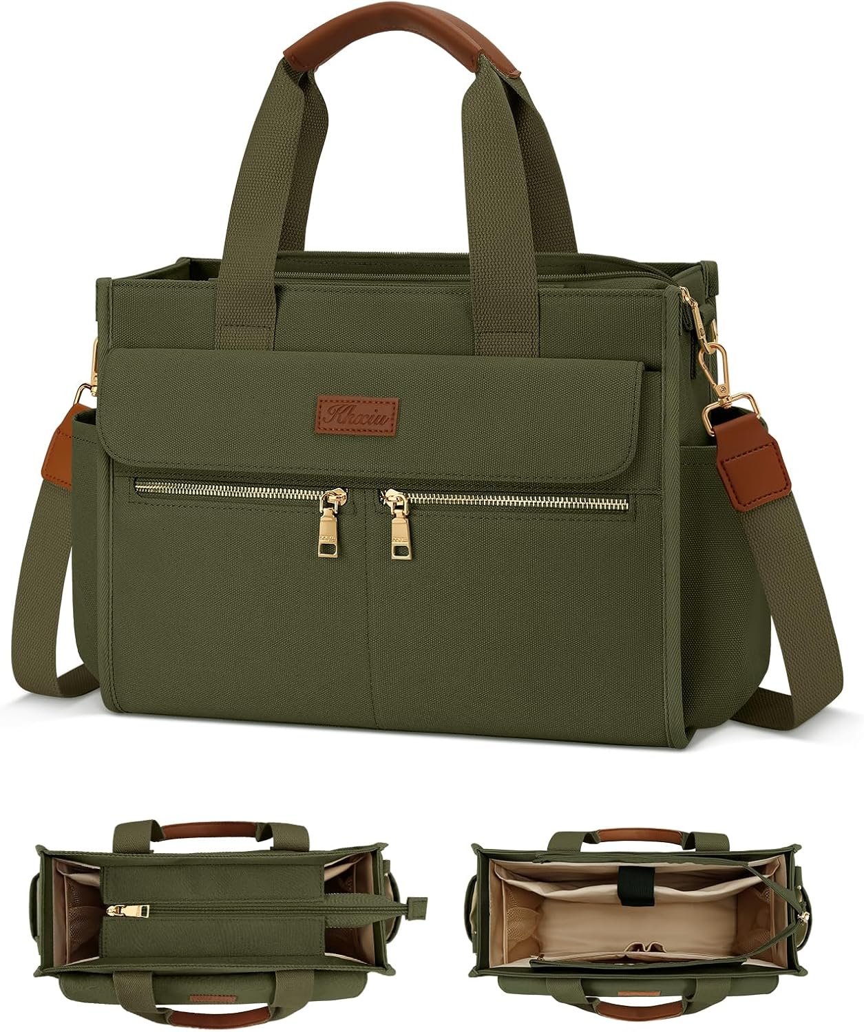 KKXIU Large Canvas Tote Bag Purse for Women with Zipper and Compartments for Work College Bible Lapatop Crossbody Handbag