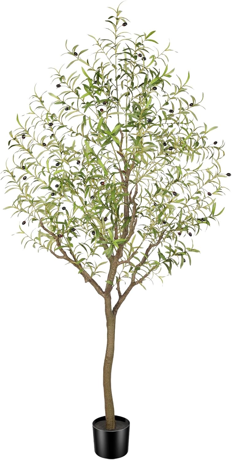 Faux Olive Tree 7FT, Olive Trees Artificial Indoor, Tall Fake Tree with Realistic Leaves & Fruits for Home Office Living Room Decor