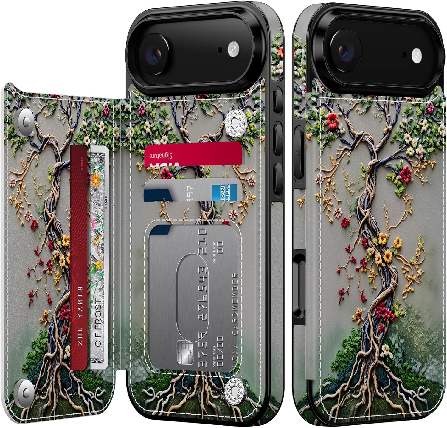 FUNMIKO for iPhone Air Case Wallet with Card Holder + Cash Clip, RFID-Blocking, Military-Grade Drop Protection & UV-Printed Artwork, Phone Case for iPhone 17 Air - Blooming Tree of Life