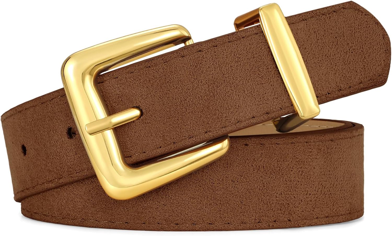 WHIPPY Women Suede Belt for Jeans Pants Casual Fashion Ladies Waist Belts with Retro Gold Buckle