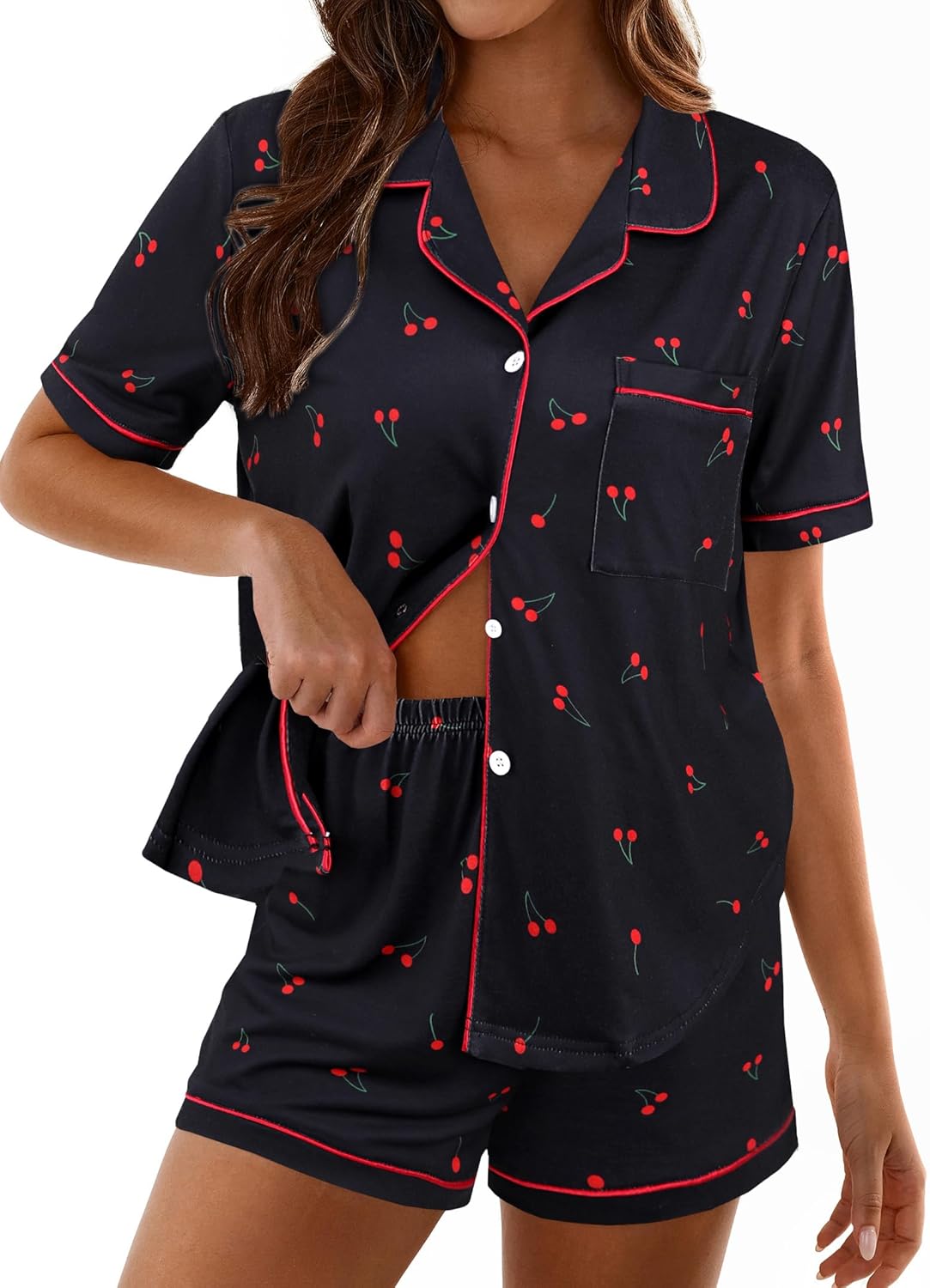 Hilinker Women's Graphic 2 Piece Pajama Set Cute Button Up Shirt and Shorts PJ Sets