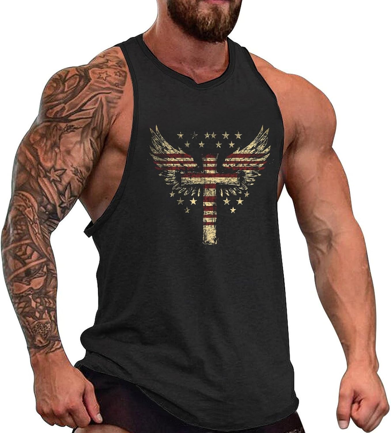 MARSVOVO Novelty Printed Mens Tank Tops Gym Muscle Sleeveless T Shirts Breathable Loose Casual Workout Summer Tank