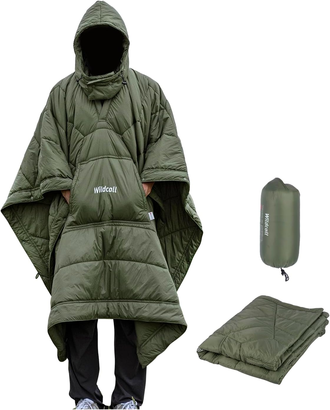 WildCall Hooded Camping Blanket with 3M Thinsulate Insulation Wearable Poncho Blanket Ultralight Foldable Quilt Sleeping Bag for Outdoor, Hiking, Stadium