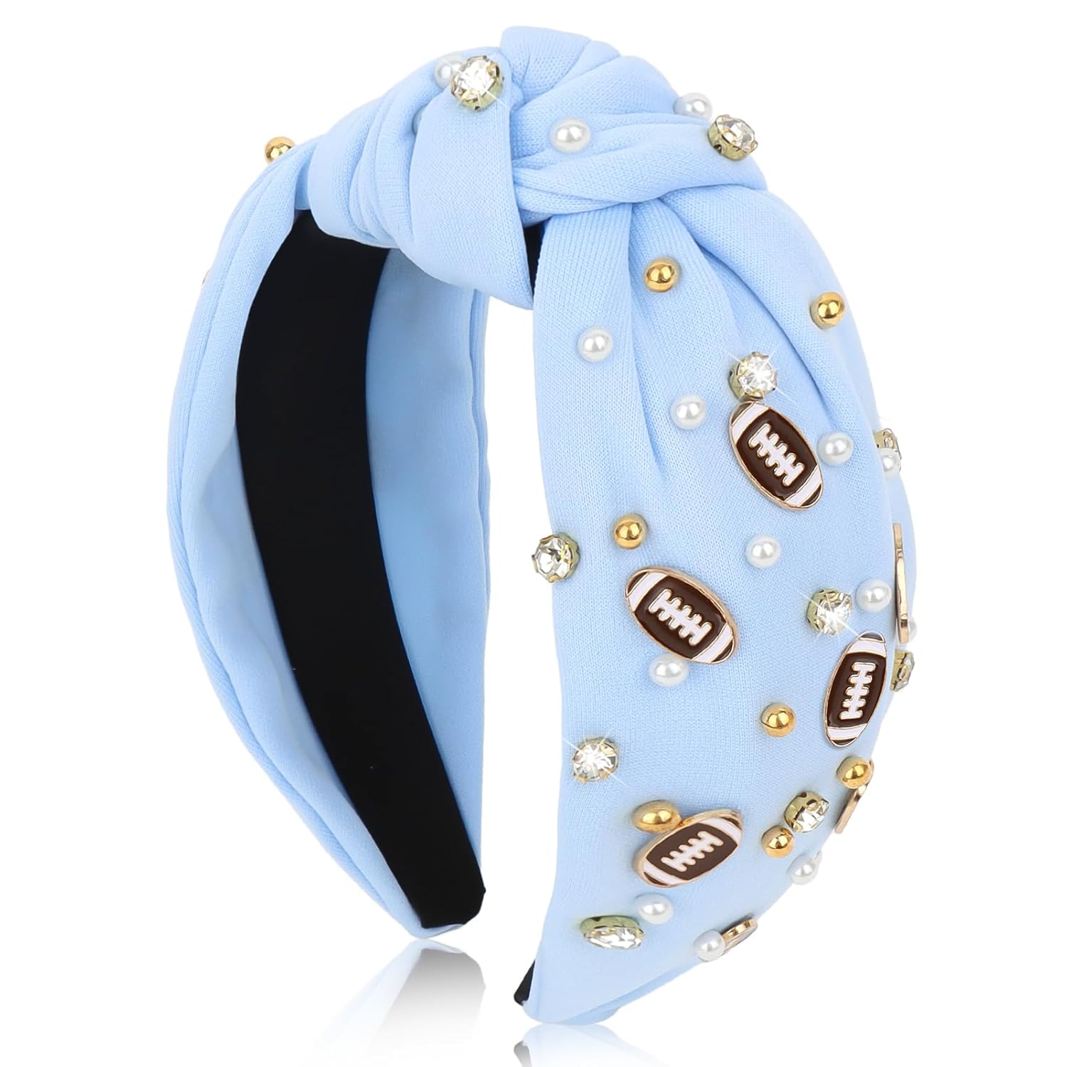 Football Headbands for Women Crystal Football Embellished Wide Top Knot Headband for Women Game Day Hair Accessories (Blue)