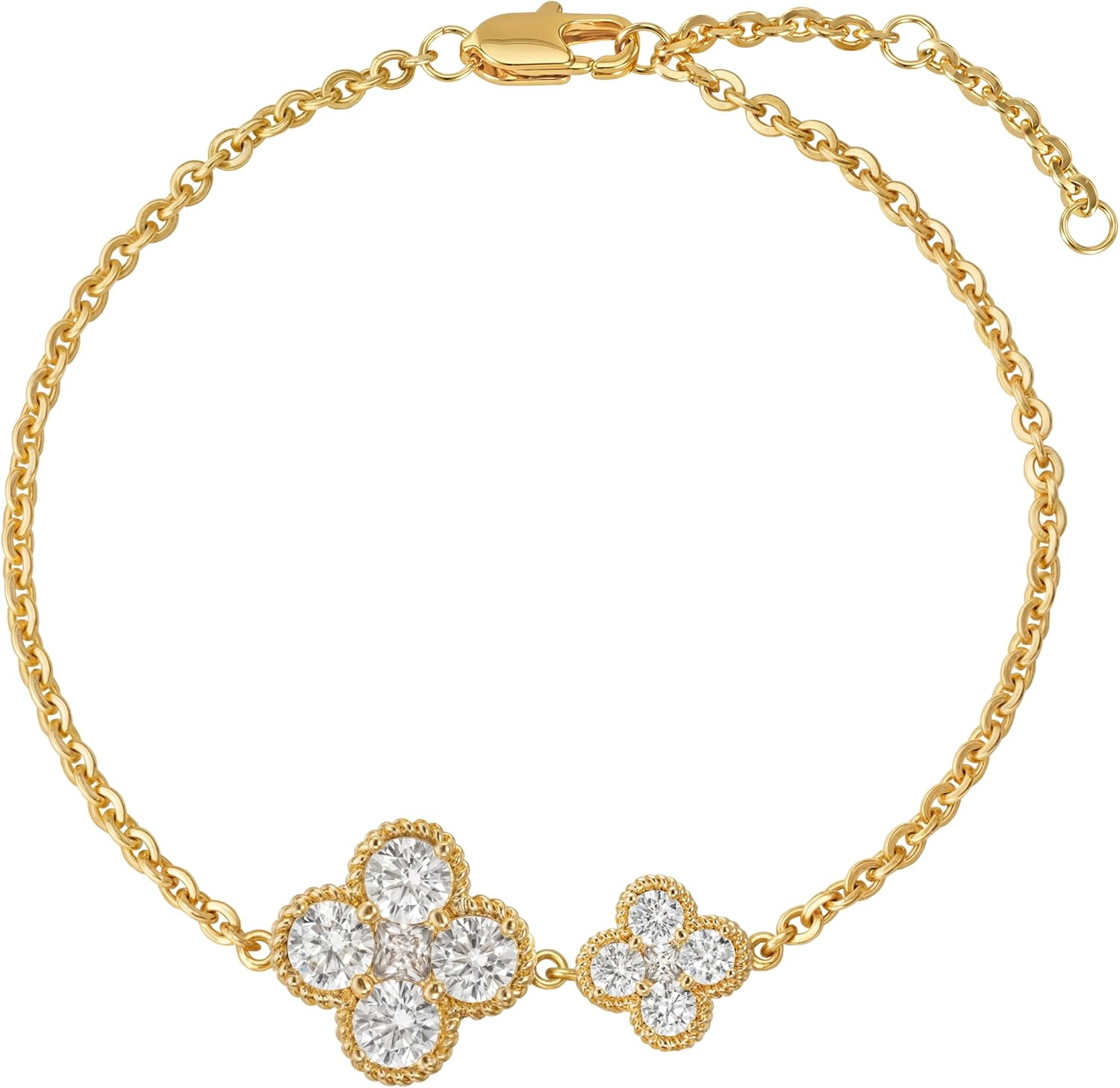 Birthstone Bracelets for Women, 14K Gold Plated Dainty Gold 2 Clover Bracelet Flower Charm Link 12 Month Birthstone Jewelry for Women Trendy Birthday Gifts