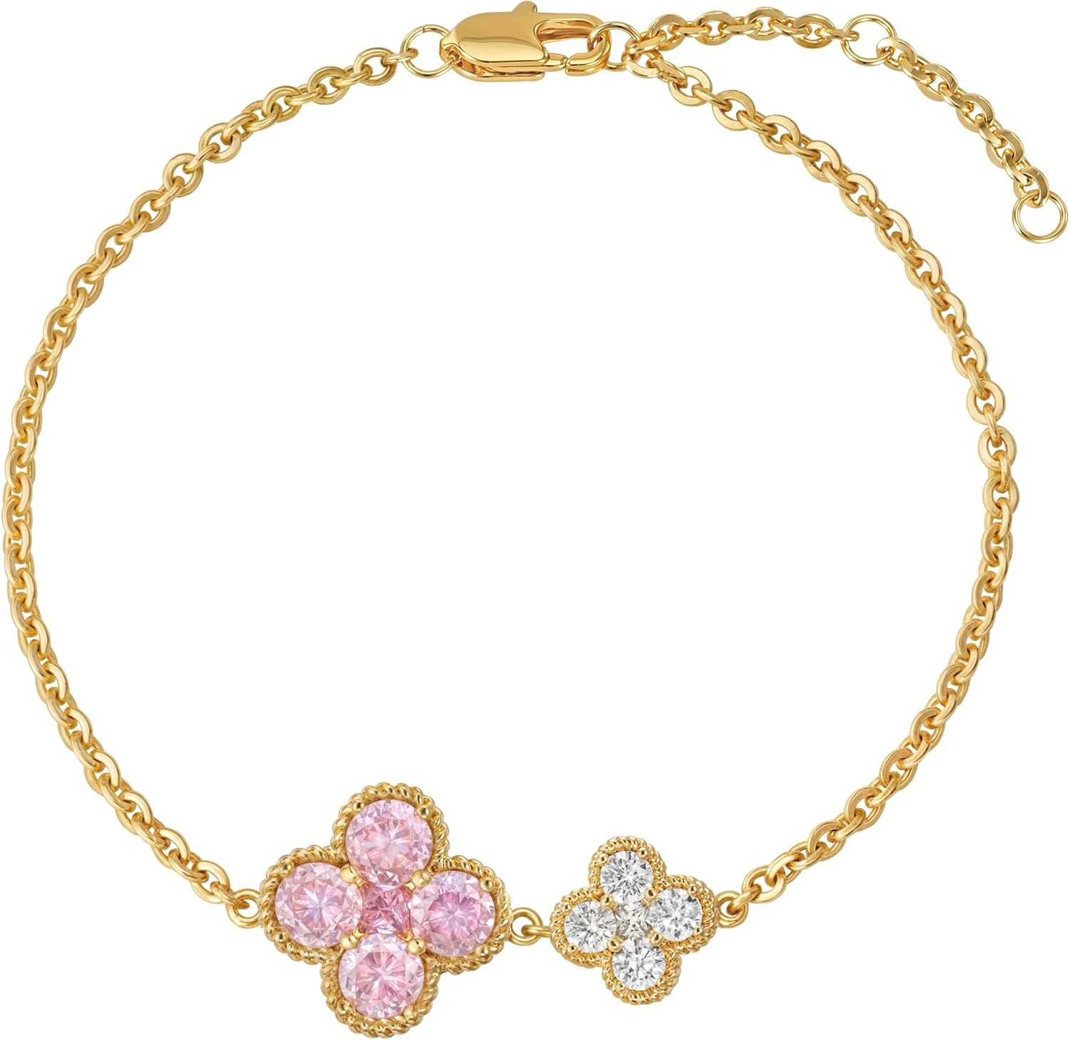 Birthstone Bracelets for Women, 14K Gold Plated Dainty Gold 2 Clover Bracelet Flower Charm Link 12 Month Birthstone Jewelry for Women Trendy Birthday Gifts
