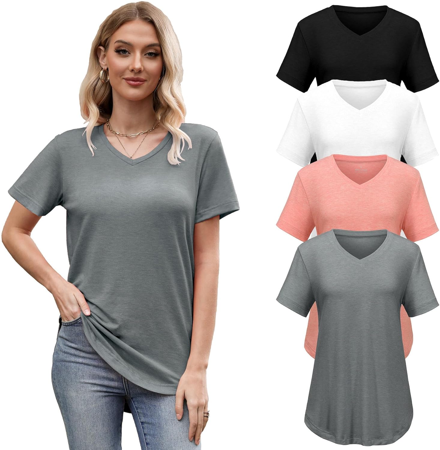 4 Pack Oversized Tshirts for Women Short Sleeve V Neck T Shirts Casual Tunic Tops Loose Fit Shirts Plus Size Tops