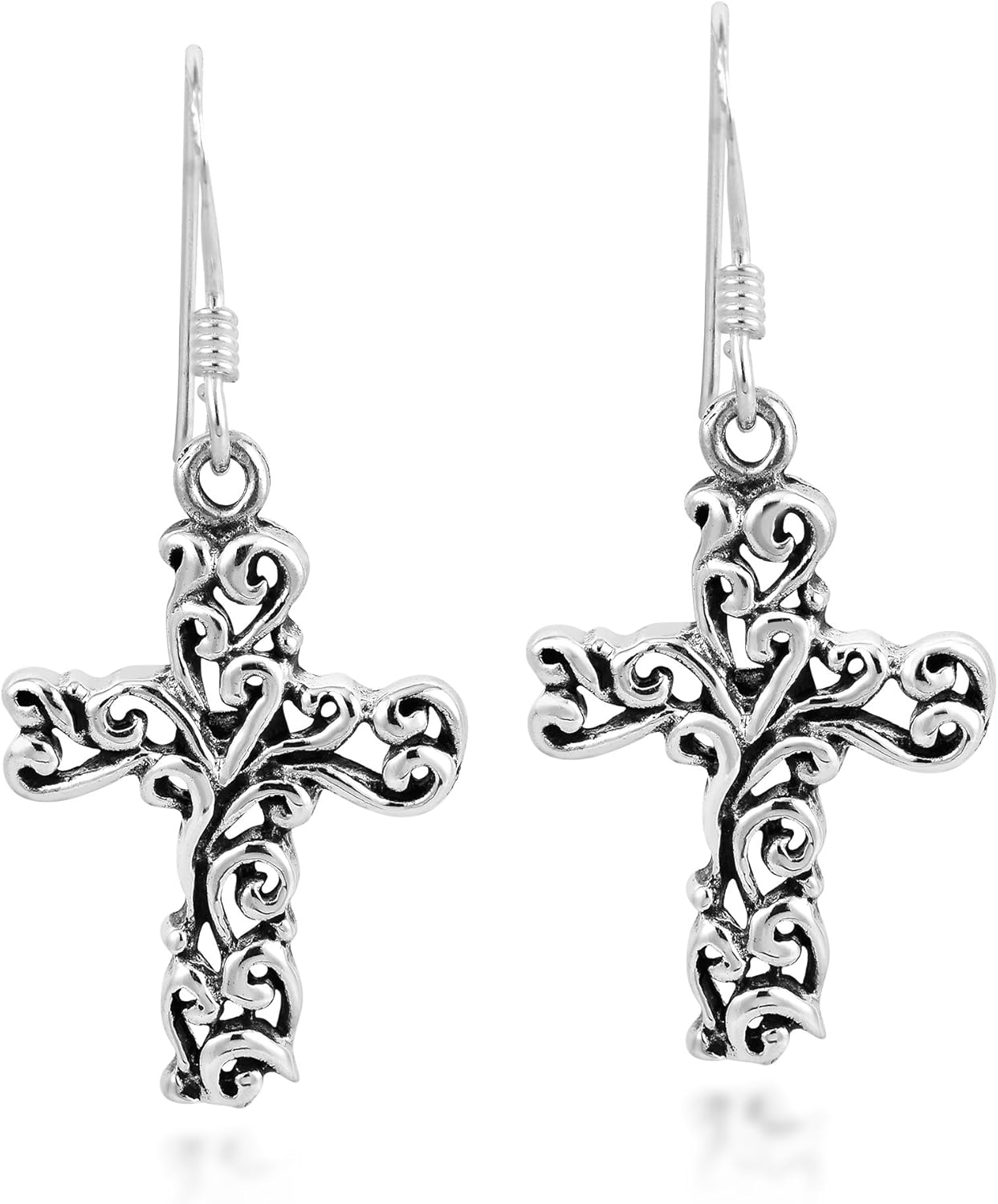 AeraVida Detailed Filigree Swirl Cross .925 Sterling Silver Dangle Earrings | Cross Earrings for Women | Cross Dangle Earring | Sterling Silver Dangle Earrings