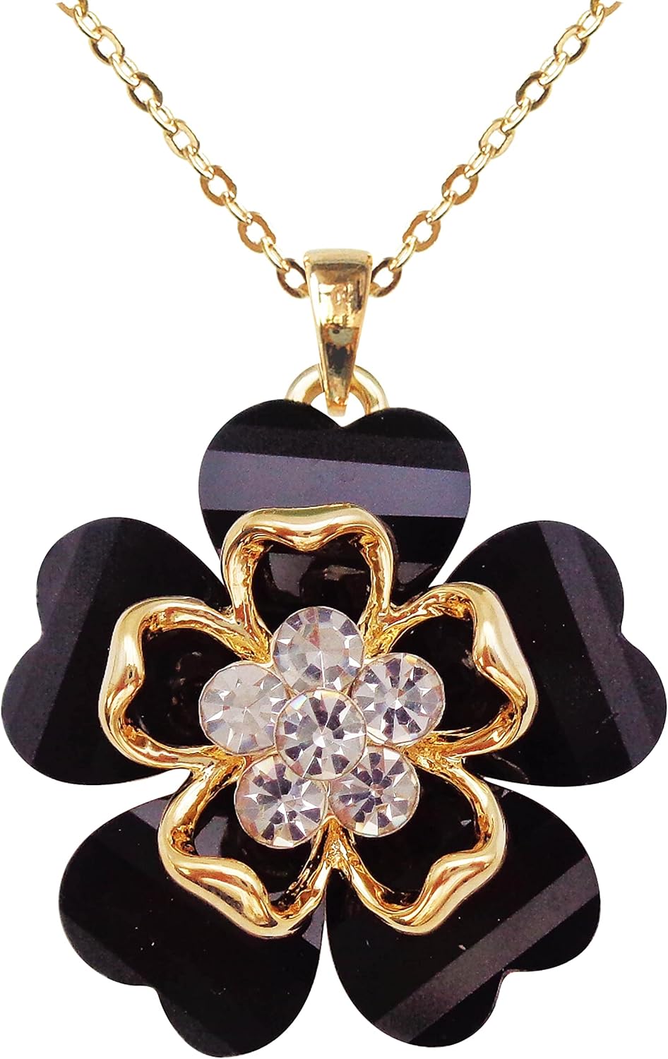 Navachi 18k Gold Plated White Crystal Multicolor Acetate Blooming Flowers Pendant Necklace 16"+2"