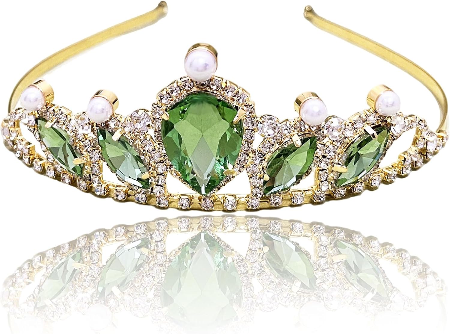 Princess Tiana Tiara Green Crown Tiana Headband Birthday Party Prom Halloween Costume Accessories Gifts