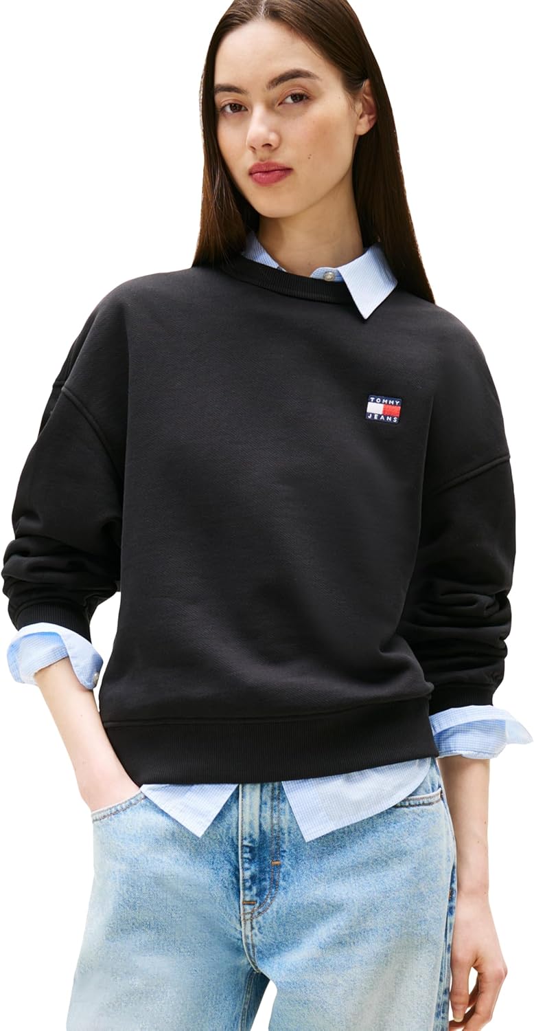 Tommy Jeans womens Medium Weight Pullover Crewneck With Embroidered Flag Logo