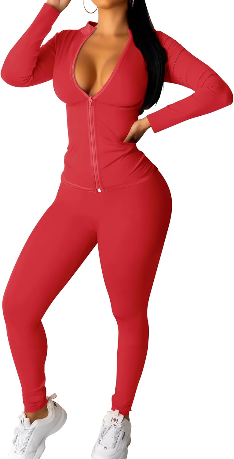 CLOCOR Womens 2 Piece Outfits Sweatsuits - Tracksuit Set Long Sleeve Crop Top & Drawstring Wide Leg Pants with Pockets
