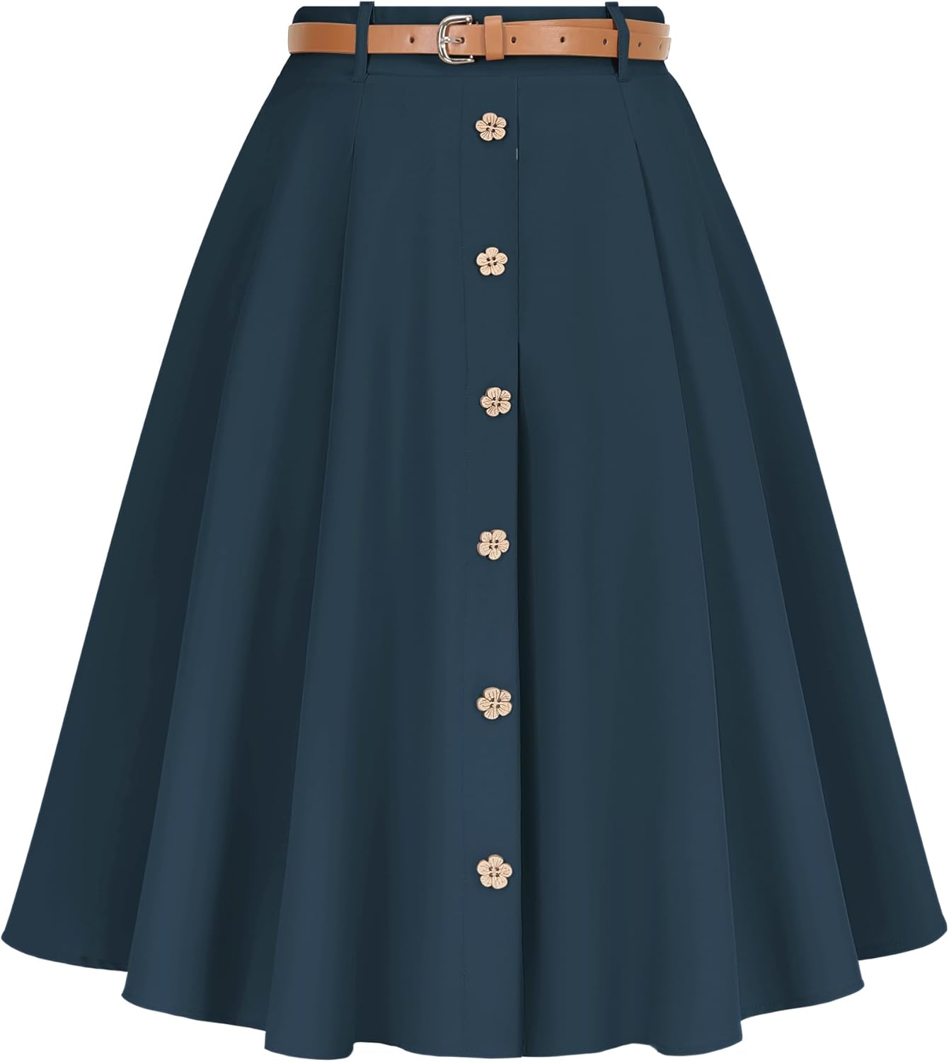Wedtrend Vintage Skirts for Women Pleated Midi Skirt Button Down Work Skirts A Line Skirt with Belt&Pockets
